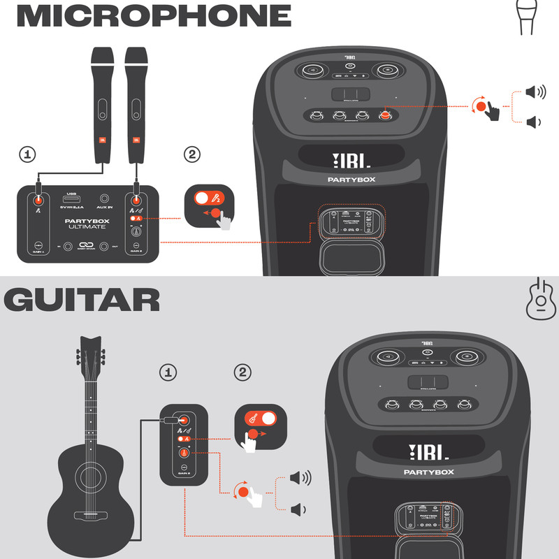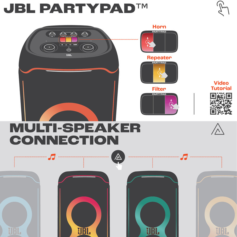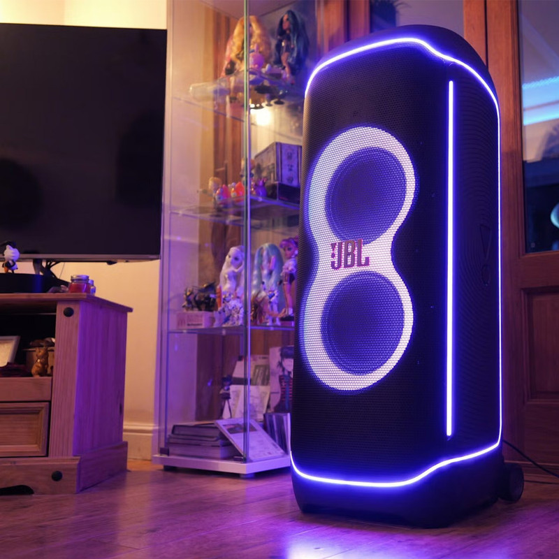 اسپیکر پرتابل و بلوتوثی Ultimate نسل جدید اسپیکرهای سری PartyBox از برند محبوب جی بی ال است. این اسپیکر قابل حمل با درایورهای بهبود یافته و سخت افزار بروز شده، تجربهی صوتی متفاوتی را به شما ارائه میدهد. همچنین طراحی ظاهری زیبا و چشمگیر آن همراه با بدنهی ضدآب و مقاوم ، شما را با سطح جدیدی از سیستمهای صوتی پرتابل آشنا میکند. دلیل نامگذاری این اسپیکر ظرفیت بالای صدای تولیدی و آخرین و به روزترین تکنولوژیهای نوری و سیستماتیک این محصول است همچنین برای اتصال این اسپیکر به دستگاههای پخش مانند گوشی موبایل یا پلیرها ، از تکنولوژی بلوتوث استفاده شده است تا بتوانید به راحتی به این اسپیکر متصل شده و به صورت بی سیم موسیقی مورد علاقه خود را بشنوید. جی بی ال در سری جدید اسپیکر Ultimate از بلوتوث نسخه 5.3 که جدید ترین نسخه در حال حاضر است استفاده کرده است و این اسپیکر حرفهای دارای صدای قدرتمند و شفافی است که توسط درایور های جدید و بهبود یافته تولید و پخش میشود. 2 عدد ساب ووفر 242میلی متری(9 اینچی) به همراه 2 عدد بلندگوی مید رنج 120میلی متری(4.5 اینچی) و 2 عدد بلندگوی تیوتر 74 میلی متری(2.75اینچی)در کنار هم تجربهی صوتی جدید و بی نظیری را برای شما فراهم میکنند. در مجموع این محصول قادر است تا صدایی به قدرت 1100 وات RMS را تولید کرده و به گوش شما برساند. بازه فرکانسی قابل پخش در این سیستم صوتی مابین 30 هرتز تا 20000 هرتز است که برای اسپیکری با این ابعاد فوق العاده است. تنظیمات افکتهای صوتی و نوری نیز از جدید ترین نوع بوده و رقص نور و نور پردازی با جزعیات دقیق آهنگ پخش شده هماهنگ میگردد. ورودیهای میکروفن و گیتار هم دارای تنظیمات دقیقی است تا هر آنچه از صوت و تصویر برای برپایی میهمانیهای خود نیاز دارید در کنار هم جمع باشد.با وجود وزن زیاد این محصول،چرخ های تقویت شده آن نسبت به مدلهای قبلی کارایی بهتری در جا به جایی آن در اختیار کاربر قرار می دهند.اتصال تمامی محصولات خانواده PartyBox به هم در این محصول دیده میشود و میتواند تمام کننده ی نیاز صوتی شما باشد.اسپیکر Ultimate برترین محصولی است که واژهی JBL Pro Sound را به تصویر میکشد.
