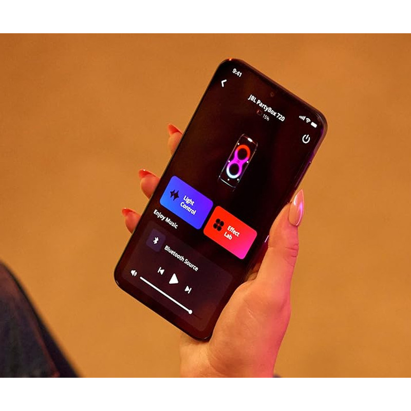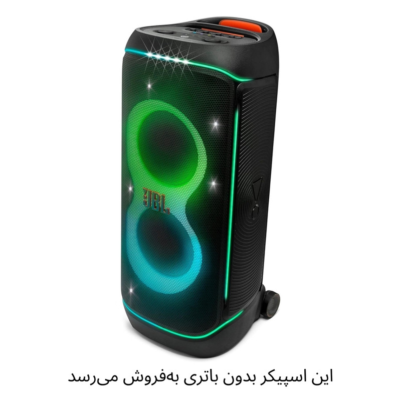 (این اسپیکر بدون باتری بهفروش میرسد) - اسپیکر بلوتوثی قابل حمل جی بی ال مدل PartyBox 720، یک غول صوتی ۳۱ کیلوگرمی با ابعاد ۴۰۶x۹۴۲x۴۱۶ میلیمتر است که با بدنهای از جنس پلاستیک و چرخ و دستگیره ثابت طراحی شده تا جابهجایی آن آسان باشد، این دستگاه قدرتمند با توان خروجی کلی ۸۰۰ وات، صدای JBL Pro Sound را از طریق دو سابووفر ۹ اینچی و دو توییتر ارائه میدهد و پاسخ فرکانسی گستردهای بین ۳۲ تا ۲۰۰۰۰ هرتز دارد، همچنین با بهرهگیری از فناوری AI Sound Boost کیفیت خروجی صدا را بهینه میسازد و به واسطه گواهی مقاومت در برابر پاشش آب و گرد و غبار، برای فضاهای باز نیز مناسب است، نورپردازی دینامیک و هماهنگ با ریتم موسیقی (نور RGB) یکی از ویژگیهای برجسته این اسپیکر است که از طریق اپلیکیشن JBL PartyBox قابل تنظیم است، اتصالات آن بسیار کامل است و شامل بلوتوث نسخه ۵.۴ با پروفایلهای A۲DP و AVRCP، ورودیهای AUX، USB Type-C، دو ورودی XLR برای اتصال میکروفون یا گیتار الکتریک و قابلیت Auracast برای اتصال چندین اسپیکر میشود. علاوه بر آن، دکمه Bass Boost و قابلیتهای تنظیم اکولایزر و حالتهای مختلف پخش صدا برای شخصیسازی تجربه شنیداری در آن تعبیه شده است.