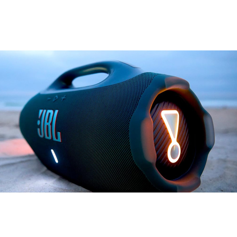 با اسپیکر بلوتوثی قابل حمل جیبیال مدل Boombox 4، قدرت افسانهای صدای JBL را در هر مکانی تجربه کنید. این اسپیکر با ابعاد ۵۱۰x۲۶۰x۲۱۰ میلیمتر و وزن قابل توجه ۵.۹ کیلوگرم، یک غول صوتی واقعی است که به لطف دستگیرهی ثابت و محکم، به راحتی قابل حمل است. قلب تپندهی این دستگاه، توان خروجی شگفتانگیز ۲۱۰ وات است که از طریق چهار درایور (دو ووفر ۵ اینچی و دو تیوتر) و سه رادیاتور پسیو، صدایی شفاف با بیسی عمیق و کوبنده (در دو حالت Deep و Punchy) ارائه میدهد. فناوری نوآورانه AI Sound Boost نیز به صورت هوشمند کیفیت صدا را بهینه میکند. بدنه این اسپیکر که از پلاستیک بازیافتی ساخته شده، دارای استاندارد بالای IP68 است؛ به این معنی که در برابر نفوذ گرد و غبار و غوطهوری کامل در آب تا عمق ۱.۵ متر به مدت ۳۰ دقیقه کاملاً مقاوم است و آن را برای استفاده در ساحل، کنار استخر یا در سفر ایدهآل میسازد. باتری لیتیوم یونی با ظرفیت ۶۷۰۰ میلیآمپر ساعت، نقطه قوت دیگر Boombox 4 است که تا ۲۸ ساعت پخش مداوم در حالت استاندارد (و تا ۳۴ ساعت در حالت Playtime Boost) را تضمین میکند. همچنین، این اسپیکر میتواند به عنوان یک پاوربانک برای شارژ دستگاههای دیگر شما عمل کند. اتصال از طریق بلوتوث مدرن نسخه ۵.۴ انجام میشود و با پشتیبانی از فناوری JBL Auracast، میتوانید آن را به اسپیکرهای سازگار دیگر متصل کرده و صدایی فراگیرتر ایجاد کنید. کنترل کامل تنظیمات و حالتهای صدا نیز از طریق اپلیکیشن موبایل در دسترس است.